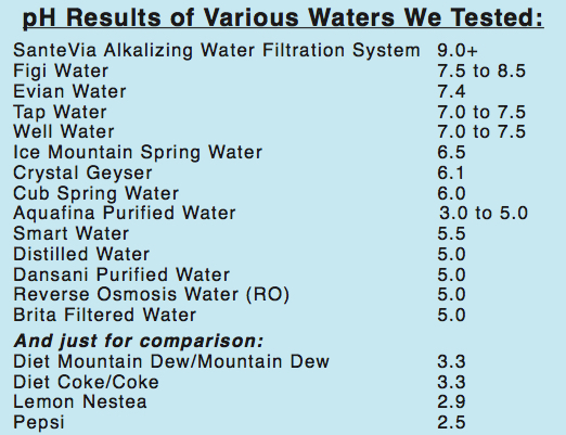 water that is acidic lowers the pH of the body, causing all kinds of health problems, including infections, osteoporosis and even cancer.